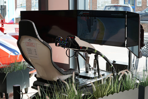 Our Assetto Corsa sim is a full motion race simulator, with a single seat and wrap around screens for the full immersive experience.